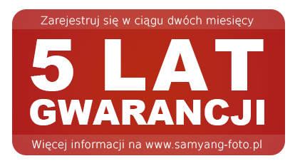 Jakość obiektywów Samyang znana jest już od dawna. Z tego powodu F.H. Foto-Technika oferuje w Polsce możliwość bezpłatnego przedłużenia gwarancji do 5 lat przy dokonaniu rejestracji produktu w ciągu 60 dni od zakupu (daty wystawienia paragonu lub faktury).